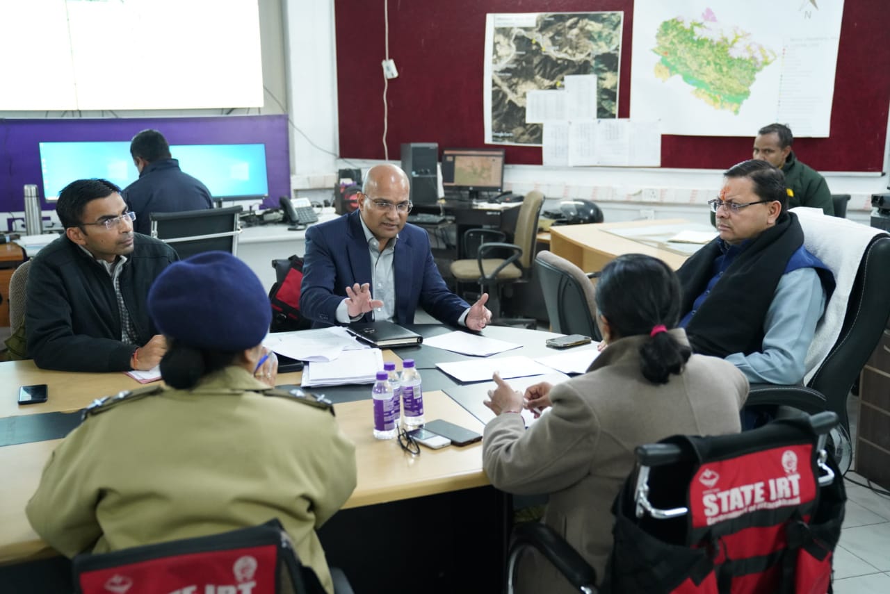 मुख्यमंत्री श्री पुष्कर सिंह धामी ने शनिवार को जोशीमठ भू धंसाव क्षेत्र का स्थलीय निरीक्षण एवं पीडितो से मुलकात के बाद वापस देहरादून पहुंचने पर सचिवालय स्थित आपदा प्रबन्धन केन्द्र में शासन के उच्चाधिकारियों के साथ राहत एवं बचाव कार्यों की समीक्षा की।