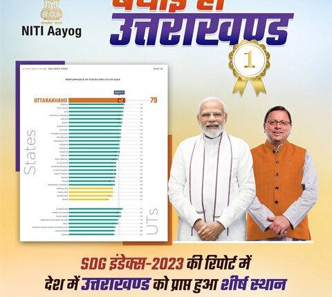 देहरादून। नीति आयोग भारत सरकार ने शुक्रवार को एसडीजी 2023-24 की रिपोर्ट जारी की है। रिपोर्ट में उत्तराखंड ने सतत विकास लक्ष्यों की कसौटी पर खरा उतरते हुए पूरे देश मे पहला स्थान हासिल किया है। प्रधानमंत्री नरेंद्र मोदी के मार्गदर्शन और मुख्यमंत्री पुष्कर सिंह धामी के नेतृत्व में उत्तराखंड तेजी से विकास की राह पर अग्रसर है। एसडीजी के सभी लक्ष्यों को हासिल करने के लिए राज्य सरकार तेजी से कदम बढ़ा रही है।