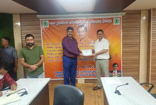 युवा उत्तराखण्ड प्रदेश के युवा, ऊर्जावान व जन-जन के हृदय सम्राट मुख्यमंत्री पुष्कर सिंह धामी क जन्मदिवस के उपलक्ष में पाॅवर ट्रांसमिशन काॅरपोरेशन आफ उत्तराखण्ड लि0 के मुख्यालय विद्युत भवन में आई0एम0ए0 वल्ड बैंक के सौजन्य से स्वैच्छिक रक्तदान शिविर का आयोजन किया गया।