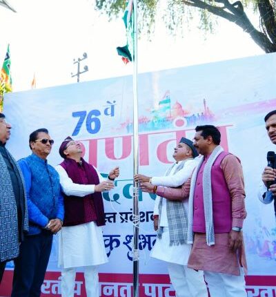 देहरादून। 76 वें गणतंत्र दिवस के अवसर पर मुख्यमंत्री पुष्कर सिंह धामी और भाजपा के प्रदेश अध्यक्ष महेंद्र भट्ट ने बलवीर रोड स्थित भाजपा कार्यालय में राष्ट्रीय ध्वज फहराया। इस अवसर पर उन्होंने सभी को गणतंत्र दिवस की शुभकामनाएं दी।