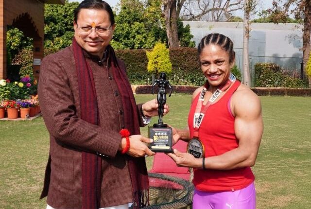 मुख्यमंत्री धामी ने प्रतिभा थपलियाल को किया सम्मानित