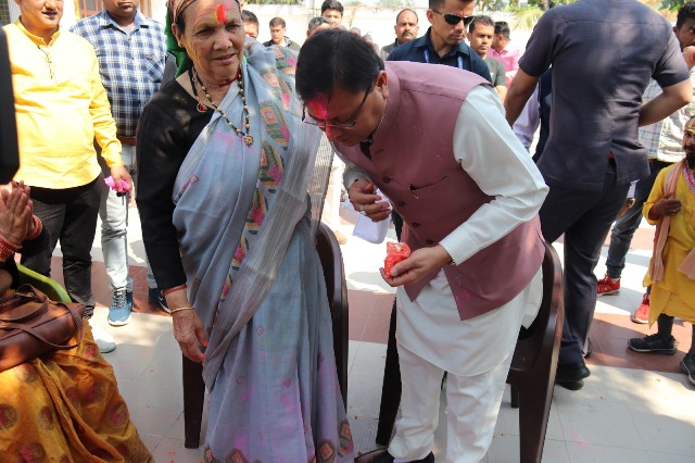मुख्यमंत्री पुष्कर सिंह धामी ने रविवार को अपने निजी आवास नगला तराई खटीमा पर होली पर्व के अवसर पर अपनी माता जी को गुलाल लगाकर उनका आशीर्वाद लिया। इस दौरान उन्होंने आवास पर पहुंचे लोगो को भी गुलाल लगाकर होली की शुभकामनाएं व बधाई दी।