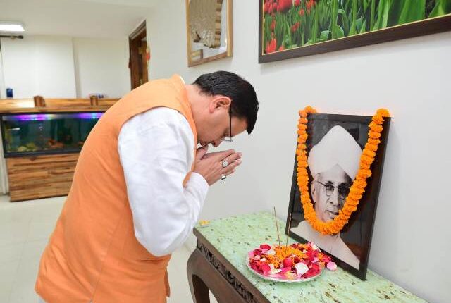 देहरादून। मुख्यमंत्री पुष्कर सिंह धामी ने मंगलवार को मुख्यमंत्री आवास में पूर्व राष्ट्रपति एवं महान शिक्षाविद्, भारत रत्न डॉ. सर्वपल्ली राधाकृष्णन जी की जयंती पर उनके चित्र पर श्रद्धासुमन अर्पित किए। मुख्यमंत्री ने कहा कि पूर्व राष्ट्रपति डॉ. सर्वपल्ली राधाकृष्णन द्वारा शिक्षा के क्षेत्र में दिए गए योगदान से समाज हमेशा प्रेरित होगा। उन्होंने ’शिक्षक दिवस’ की सभी प्रदेशवासियों को हार्दिक बधाई एवं शुभकामनाएं भी दी।