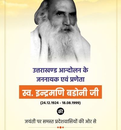 मुख्यमंत्री ने कहा कि स्वर्गीय इंद्रमणि बड़ोनी 1994 के राज्य आंदोलन के सूत्रधार रहे। वे देवभूमि के संस्कारों के अग्रदूत व पहाड़ के सच्चे हितैषी थे। पर्वतीय क्षेत्रों के विकास के लिये उनकी संकल्पनाओं एवं राज्य निर्माण के संघर्ष में उनके योगदान को भुलाया नहीं जा सकता। मुख्यमंत्री ने कहा कि स्व. बड़ोनी जी की जयन्ती का अवसर हमें उत्तराखण्ड को विकसित एवं अग्रणी राज्य बनाने की भी प्रेरणा देता है।