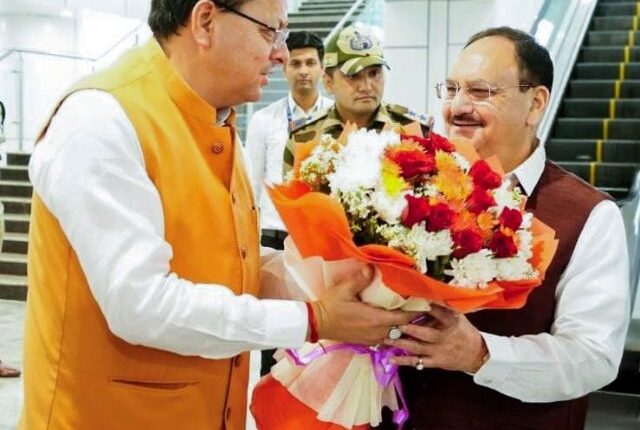 देहरादून। मुख्यमंत्री पुष्कर सिंह धामी ने मंगलवार को केंद्रीय स्वास्थ्य और परिवार कल्याण मंत्री जगत प्रकाश नड्डा के देवभूमि उत्तराखंड आगमन पर जॉलीग्रांट एयरपोर्ट में स्वागत किया।