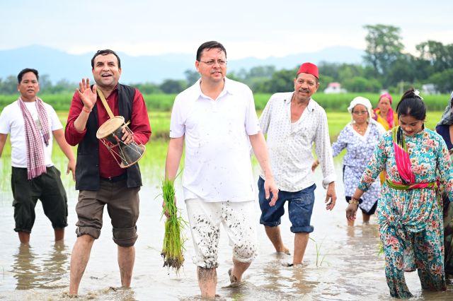 खटीमा । उत्तराखंड के मुख्यमंत्री पुष्कर सिंह धामी ने शनिवार को अपने खेत में धान की रोपाई कर किसानों के परिश्रम, त्याग और समर्पण को नमन किया। उन्होंने कहा कि खेतों में उतरकर पुराने दिनों की यादें ताजा हो गईं। मुख्यमंत्री ने कहा कि अन्नदाता न केवल हमारी अर्थव्यवस्था की रीढ़ हैं, बल्कि वे हमारी संस्कृति और परंपराओं के संवाहक भी हैं।