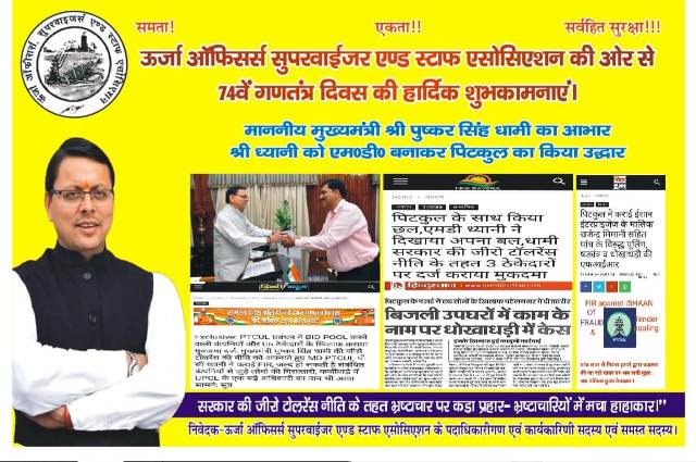 भ्रष्टाचार एवं टेण्डरों में हुई गडबडियों के विरुद्ध की गई कार्यवाही हेतु पिटकुल एमडी पी०सी० ध्यानी का जताया आभार