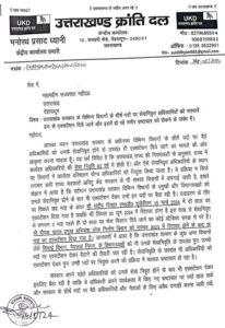 देहरादून। उत्तराखंड क्रांति दल के केंद्रीय महामंत्री सुनील ध्यानी ने राज्यपाल को उत्तराखंड सरकार के अधीनस्थ विभिन्न विभागों के शीर्ष पर बैठे अधिकारियों