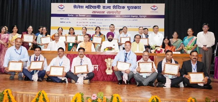 शिक्षक दिवस के अवसर पर मंगलवार को राजभवन में ‘‘शैलेश मटियानी राज्य शैक्षिक पुरस्कार’’ सम्मान समारोह आयोजित हुआ। समारोह में राज्यपाल लेफ्टिनेंट जनरल गुरमीत सिंह (से नि), मुख्यमंत्री पुष्कर सिंह धामी और शिक्षा मंत्री डा. धन सिंह रावत ने वर्ष 2022 में शैलेश मटियानी राज्य शैक्षिक पुरस्कारों के लिए चयनित 17 शिक्षक एवं शिक्षिकाओं को सम्मानित किया। वर्ष 2022 में चयनित 10 प्रारम्भिक शिक्षक, 06 माध्यमिक शिक्षक एवं 01 शिक्षक प्रशिक्षक को यह सम्मान प्रदान किया गया है। (सूची संलग्न)
