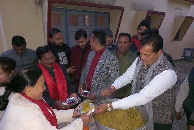 इस मौके पर मंत्री डा. अग्रवाल ने कार्यकर्ताओं में खिचड़ी वितरित की।