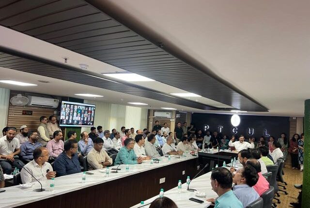 पावर ट्रांसमीशन काॅरपोरेशन ऑफ उत्तराखण्ड लि0 के मुख्यालय ‘‘विद्युत भवन’’ में धनतेरस पर्व के शुभ अवसर पर आज दिनांक 18.10.2025 को पिटकुल परिवार के मुखिया प्रबन्ध निदेशक पी0सी0 ध्यानी द्वारा पिटकुल के मुख्यालय भवन में कार्यरत समस्त कार्मिकों को सपरिवार धनतेरस, दीपावली, गोवर्द्धन पूजा एवं भाई दूज की शुभकामनाएं प्रेशित की गयी। इसके साथ ही प्रदेश के अन्य क्षेत्रों में स्थित कार्यालय एवं उपसंस्थानों एवं परियोजनाओं में कार्यरत समस्त नियमित एवं संविदा कार्मिकों एवं उनके परिवारजनों को भी विडियो काॅन्फ्रेन्सिंग के माध्यम से धनतेरस, दीपावली, गोवर्द्धन पूजा एवं भाई दूज की शुभकामनाएं प्रेषित की गयी।