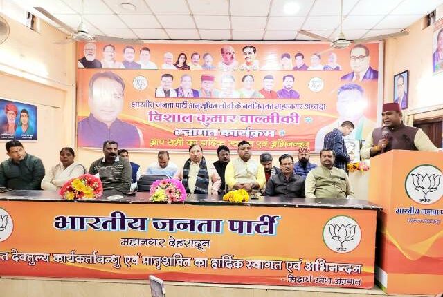 देहरादून। भारतीय जनता पार्टी महानगर कार्यालय में भारतीय जनता अनुसूचित मोर्चा के नवनियुक्त महानगर अध्यक्ष विशाल कुमार का स्वागत कार्यक्रम आयोजित किया गया जिसमें अनुसूचित समाज के युवा साथी महिला कार्यकर्ता एवं बडी संख्या के साथ महानगर कार्यालय में विशाल कुमार जी का महानगर पदाधिकारीयों द्वारा पुष्पमाला व पुष्पगुच्छ देकर स्वागत किया गया। अनुसूचित मोर्चे के अध्यक्ष विशाल कुमार नें सभी अतिथियों का धन्यवाद ज्ञापित किया और कहा हमारा मोर्चा पूर्व समय कि तरह इस कार्यकाल में भी संगठन को मजबूती देने का काम करेगा।
