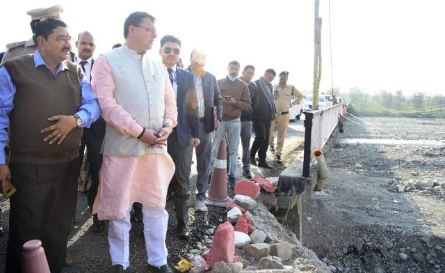 मुख्यमंत्री पुष्कर सिंह धामी ने शुक्रवार को रायपुर क्षेत्र में माह अक्टूबर 2022 में आपदा से प्रभावित सौंग पुल, ग्राम पंचायत खैरी मानसिंह में क्षतिग्रस्त सड़कें व पुश्तों के पुनर्निर्माण कार्यों का स्थलीय निरीक्षण किया।